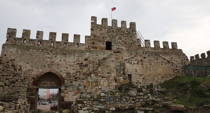 Deniz kenarındaki Enez Kalesi yanında bulunan ve sadece 1,5 cephesi ayakta kalan tarihi yapının vakfiyesine uygun olarak onarılması sürüyor.