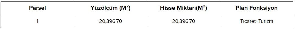 Başakşehir Kayabaşı Mahallesi’nde satışa çıkarılan arsa 984 ada 1 parselde yer alıyor. Emsal değeri 1,50 olan arsanın büyüklüğü ise 20 bin 396 metrekare. Arsanın fonksiyonu ise ticaret+turizm olarak açıklandı.