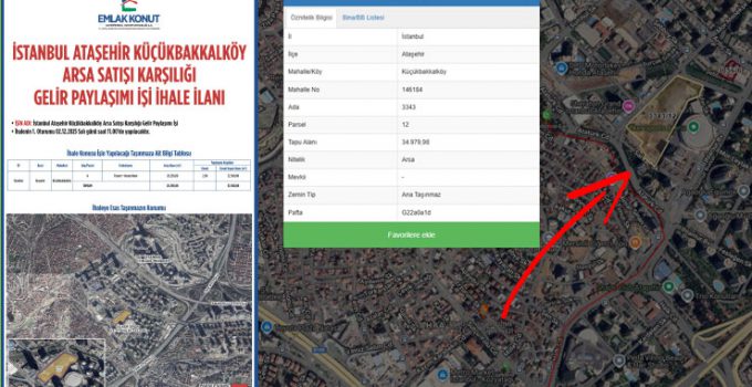 Emlak Konut GYO, Ataşehir Küçükbakkalköy’de Ülker Arena’nın hemen arkasında yer alan arsanın 26.250 metrekarelik kısmını gelir paylaşımı modeliyle ihaleye çıkarıyor.