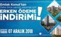 Emlak Konut Gayrimenkul Yatırım Ortaklığı, İstanbul, Ankara, İzmir, Kırklareli, Kocaeli, Nevşehir, Niğde, Tekirdağ’da bulunan toplam 65 markalı konut projesi için indirim kampanyası başlattı. Kişiye özel indirim fırsatı, borcun tamamını veya kısmi ödeme imkanı, TÜFE’den sabite dönme kolaylığı sağlanan kampanya için başvurular 7 Aralık 2018 tarihine kadar yapılabilecek.