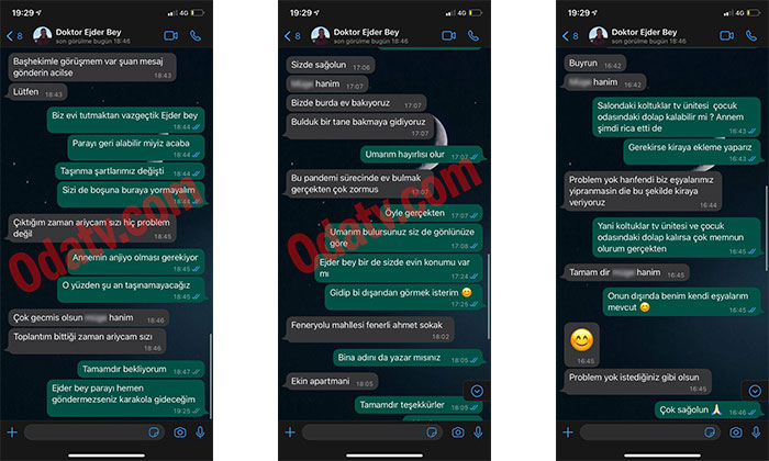 Dolandırıcının kendisini doktor olarak tanıttığını anlatan Merve B., parayı yatırdıktan sonra, dolandırıcının mesajlarından şüphelenerek parayı geri istedi. Zira, kendisini doktor olarak tanıtan dolandırıcı, mesajlarında birçok yazım yanlışı yaparken, “müsait” yerine, “müsahit” gibi basit hatalar yaptı. Yine dolandırıcı soru eklerini de ayırmazken, çoğu kelimeyi de yutarak yazdı. Bu durumdan şüphelenen Merve B., evi kiralamaktan vazgeçtiğini belirterek, dolandırıcıya mesaj yazdı ve paranın geri iadesini istedi.