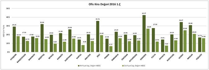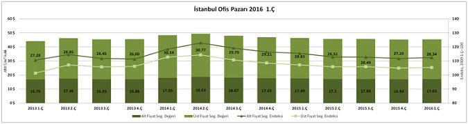 Reidin’in Ofis Kira Endeksi 2016 birinci çeyrek sonuçları açıklandı. Toplam 21 ofis bölgesini baz alan endekse göre, İstanbul geneli ofis kira değerleri, bu yılın ilk çeyreğinde 2015’in ilk çeyreğine kıyasla üst segmentte yüzde 0.43, alt segmentte ise yüzde 0.56 oranında arttı.