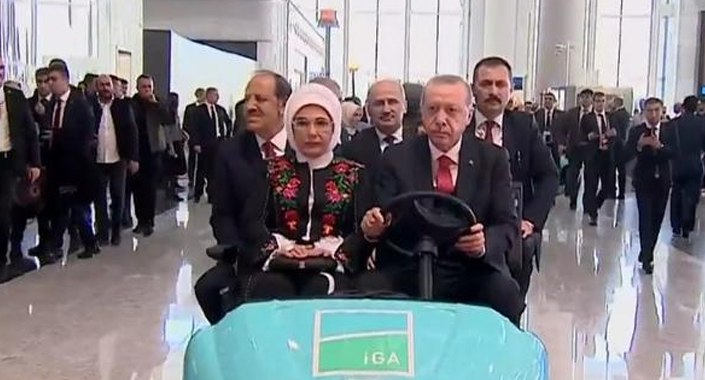 Cumhurbaşkanı Erdoğan ve Emine Erdoğan elektrikli havaalanı aracıyla alana giriş yaptı.