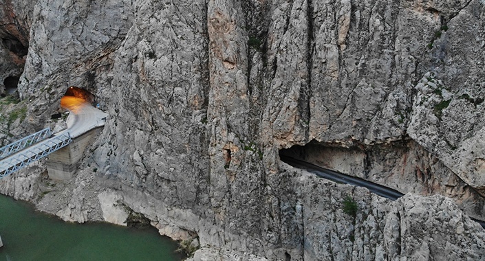 Her iki tarafı yer yer 400-500 metrelik sarp kayalık yamaçlardan oluşan Karanlık Kanyon boyunca macera tutkunlarına nefis manzaralar sunan 7 kilometre uzunluğundaki yol, içinde barındırdığı irili ufaklı 38 tünel ile çok sayıda keskin viraj ve uçurumlarıyla artık ulaşımdan ziyade turizm amaçlı kullanılıyor.
