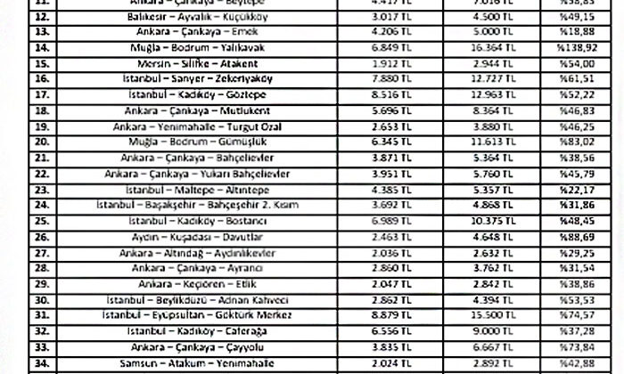 Son 1 yılda ortalama metrekare fiyatlarının 41 TL’den 65 TL’ye çıkmasıyla %60’lık bir yükselişle beşinci sırada yer alan Şişli’nin Teşvikiye semtini 32 TL’den 34 TL’ye %4’lük bir artış gösteren Şişli’nin merkezi takip ediyor. Şişli’nin Fulya semtinde ise son 1 yılda kiralık konutların ortalama metrekare fiyatları 29 TL’den 35 TL’ye çıkarak %20’lik bir artış söz konusu. Beşiktaş ilçesine bağlı Etiler’de ise fiyatlar son bir yılda 47 TL’den 68 TL’ye çıkarak %43’lük bir artış gerçekleşti. Bahçelievler’in Siyavuşpaşa semtinde ise %20’lik bir artışla ortalama metrekare fiyatları 15 TL’den 19 TL’ye çıkmış durumda. Listenin onuncu sırasında yer alan Kağıthane’nin Ortabayır semtinde ise son 1 yılda kiralık konutların metrekare fiyatları 20 TL seviyesini koruyor.