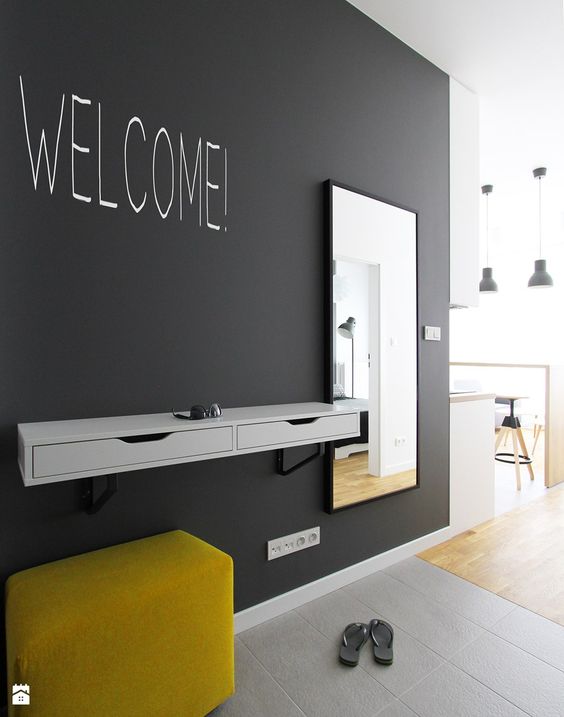 Duvarları kara tahta olarak kullanmayı sağlayan boyalar son dönemde oldukça revaçta. İster direkt tebeşirle yazılabilir bir duvar, ister yalnızca bu görünümü veren sabit bir illüstrasyon kullanarak misafirlerinizi hoş bir şekilde karşılamak mümkün. Elbette sadece misafirler için değil, sizin de zor bir iş gününün ardından evinize gelince gülümsemenizi sağlayacak bir detay bu.