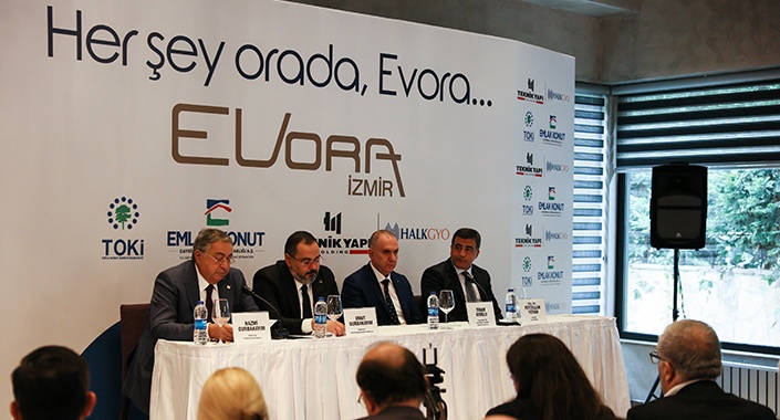 Emlak Konut GYO güvencesi ve Teknik Yapı, Halk GYO ortaklığı tarafından İzmir Konak ilçesi sınırlarında yapılacak olan Evora İzmir projesi, konut, ticaret, park, kültür ve turizm fonksiyonlarını bir arada barındıran karma proje olacak. Turizm ve kültür fonksiyonlarının yoğun olarak projelendirildiği Evora İzmir’de 1.090 bağımsız bölümden oluşan konut ve ticari fonksiyonlar, 12 bin metrekarelik park alanın yanında yükselecek.