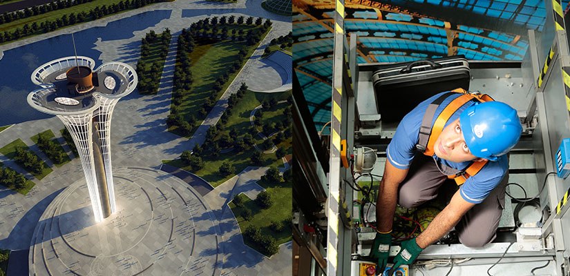 Merkez’de, Otis’in ileri teknoloji ile ürettiği hızlı ve güvenli asansör üniteleri kullanıldı.