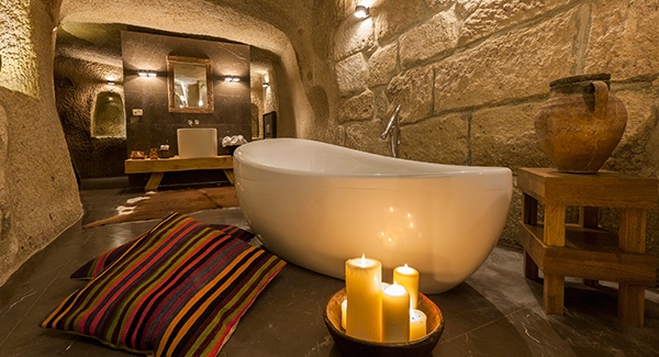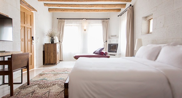 Otel, geleneksel evlerle tarihi mağaraların birleşiminden oluşuyor.