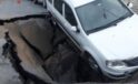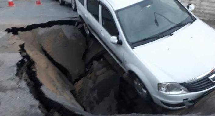 Eyüpsultan’da yol çöktü, otomobil içine düştü