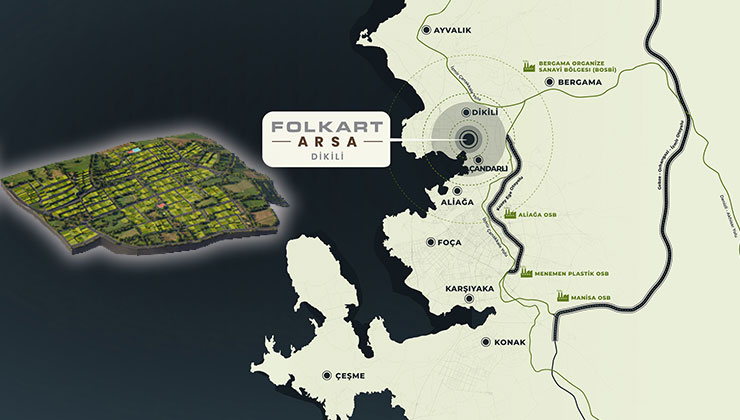 Folkart Arsa Dikili, 300 ile 600 metrekare arasında değişen büyüklükteki villa imarlı arsalarıyla yatırımcılara doğayla uyumlu, planlı bir yaşam alanı sunuyor. Proje kapsamında elektrik, su, kanalizasyon, internet, yol ve yağmur suyu hattı gibi altyapı çalışmalarının 2027 yılı Mart ayında tamamlanması planlanıyor. Arsalar Çandarlı merkezine 4 kilometre, Akvaryum Koyu’na 4 kilometre, İzmir’e 85 kilometre mesafede bulunuyor. Mavi bayraklı plajlara yakın konumu, projeyi hem yatırım hem de yaşam açısından cazip hale getiriyor.