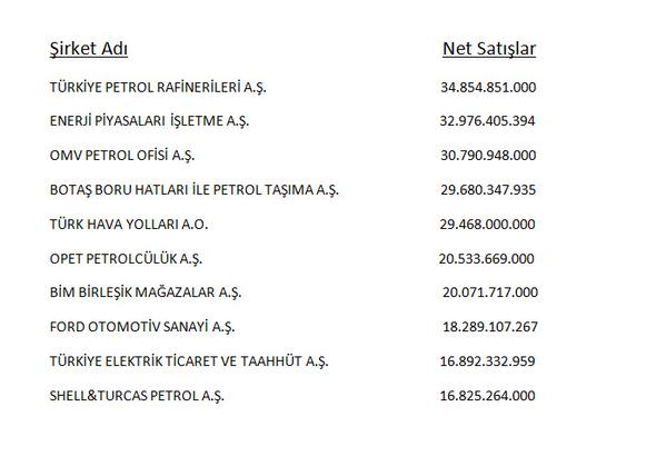Listenin bir numarası 10 yılda bir kez yerini kaybeden ama geri almayı da bilen Tüpraş oldu. İkincilik, ise Türkiye’nin enerji borsası Enerji Piyasaları İşletme AŞ’nin oldu. Üçüncü, OMV Petrol Ofisi. Ancak, listede dikkat çeken inşaat sektörü oldu. Fortune Türkiye dergisinin yaptığı açıklamaya göre, ihracatta üretimde yüzde 5.89, hizmetlerde yüzde 0.2 artış, ticarette yüzde 2 daralma olurken inşaatta yüzde 33.1 artış yakalandı.