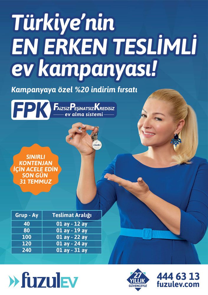 Kurulduğu günden bu yana sabit ve dar gelirli ailelerin ev hayalini gerçeğe dönüştüren FuzulEv, teslimatları erkene çekerek yine çok konuşulacak bir kampanyaya imza attı. FuzulEv başlattığı yeni kampanyada ev teslimlerinin Türkiye’de bugüne kadar yapılacak en erken teslimler olduğunu duyurdu. Sınırlı kontenjana sahip kampanya 31 Temmuz’da sona erecek.