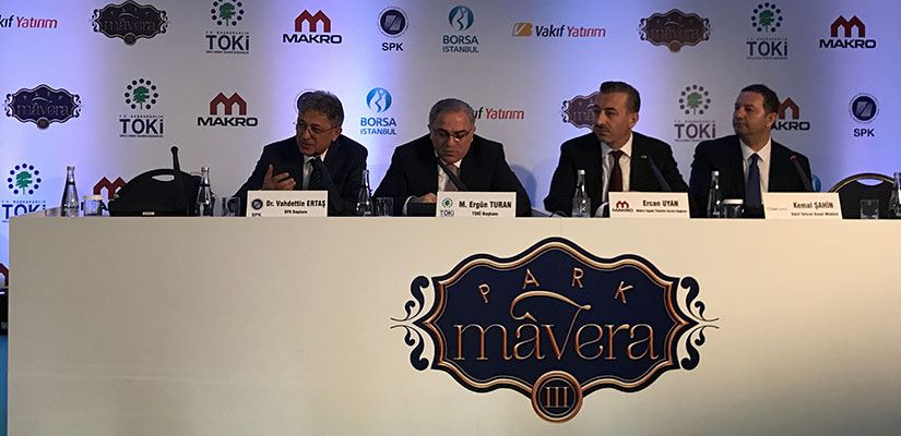 Gayrimenkul Sertifikasının detayları, TOKİ Başkanı Mehmet Ergün Turan, Sermaye Piyasası Kurulu Başkanı Dr. Vahdettin Ertaş, Borsa İstanbul A.Ş. Yönetim ve İcra Kurulu Başkanı Himmet Karadağ, Makro İnşaat Yönetim Kurulu Başkanı Ercan Uyan ve Vakıf Yatırım Genel Müdürü Kemal Şahin’in katılımıyla gerçekleştirilen toplantıda paylaşıldı. Buna göre, gelir paylaşımı modeliyle TOKİ ve Makro İnşaat işbirliğiyle inşa edilen Park Mavera 3 Projesi’nin belli bir kısmı, paylara bölünecek ve paylar, inşaatın teslim süresi olan 36 ay boyunca Borsa İstanbul’da işlem görecek. Bölünen paylar doğrultusunda inşaatın teslim süresi olan 36 ay boyunca Borsa İstanbul’da işlem görecek sertifikalarla, dileyen herkes projeye ortak olabilecek.