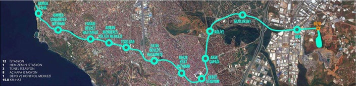 Açıklamada, ilk istasyon olan Darıca Sahil İstasyonu’ndan başlayacak yolculuğun, 12’nci ve son istasyon olan OSB istasyonunda 19 dakikada tamamlanacağı kaydedildi.