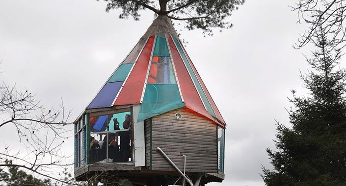 Yaklaşık 15 metrelik ağacın gövdesinde, yerden 8 metre yükseklikte yer alan, içerisinde tuvalet, banyo ve sıcak su bulunan, 7 kişinin konaklayabileceği ağaç ev, 8 köşeli, renkli çatısı ve eşsiz manzarasıyla hayranlık uyandırıyor. Bu ilginç deneyimi yaşamak isteyenler, ağaç evde gecesi 300 liraya konaklayabiliyor.