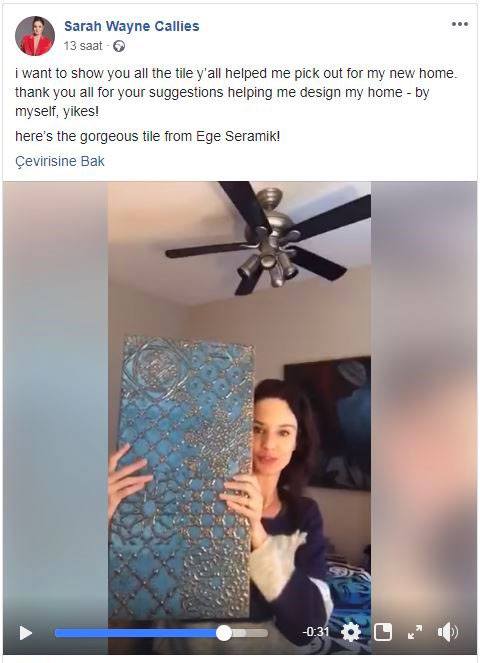 Daha önce sosyal medya hesaplarından hayranlarından kendisine yeni evinde kullanmak üzere seramik markaları önermelerini isteyen güzel oyuncu tercihini Ege Seramik’ten yana kullandı. Evinin 4 farklı bölümünde kullanılmak üzere Ege Seramik Cuba, Stratfort, Blume ve Metro serilerini seçen oyuncu ürünler hakkında oldukça heyecanlı. Seçtiği tüm ürünleri sosyal medya hesaplarında yayınladığı bir video ile hayranlarıyla paylaştı.