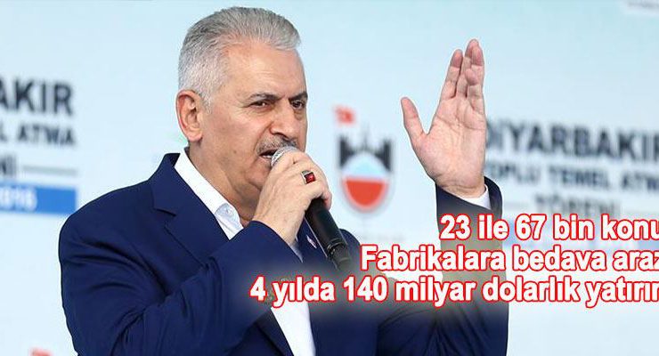 Beraberindeki başbakan yardımcıları ve bakanlarla birlikte Diyarbakır’a gelen Başbakan Yıldırım’ın açıkladığı destek paketinde “Doğu ve Güneydoğu’ya yönelik önümüzdeki 10 yıla kadar devam edecek kalkınma ve yatırım hamlesini başlatıyoruz” dedi.