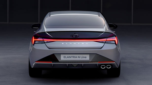 Hyundai’nin N imzalı yeni basamaklı ızgarası, motor sporlarından ilham alan geniş hava girişli ön tamponu, mat gri arka difüzörü, çift çıkışlı egzoz sistemi ve 18 inçlik jantlarıyla oldukça agresif bir yapıda olan Elantra, normal versiyona göre daha düşük ve daha geniş bir duruş sergiliyor. Elantra N Line’ın yandan görünüşü de oldukça ilgi çekici. Daha büyük frenlere sahip aracın 18 inç alaşım jantları, sportif estetiğini daha da ön plana çıkarıyor. Yan aynalar, N Line logolar ve parlak siyah plastik parçalarla sıra dışı çizgiler de amacına uygun olarak desteklenmiş oluyor.