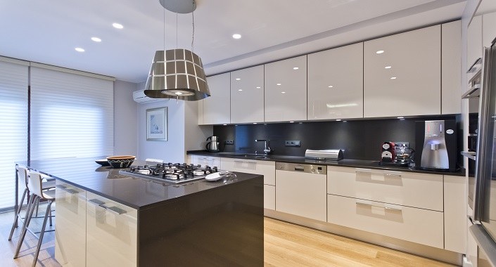 Mutfaklarda genel aydınlatma haricinde tezgah üstü spot uygulamalarının da iş yapma bakımından önemli olduğunu söyleyen Tamer ve Hatipoğlu, “Işığın tam olarak ulaşmadığı noktalar için kullanılan tezgah üstü spotlar kaybedilen ışığın geri kazandırılmasıyla ilgili akıllıca bir çözüm olabilir. Kullanılan aydınlatma rengi ve çeşidi kadar aydınlatma ürünü de temizlik ve estetik yaklaşımlar göz önünde bulundurulduğunda önem kazanır. Girinti çıkıntının çok olduğu, taşlı ve silinemeyen kumaş kaplı aydınlatma ürünleri erişilebilirlik ve dolayısıyla temizlik gibi konularda zorluk çıkarabilir. Bu nedenle mutfak aydınlatma ürünlerinde minimal ürünlerin tercihi kolaylık sağlar“ bilgisini veriyor.
