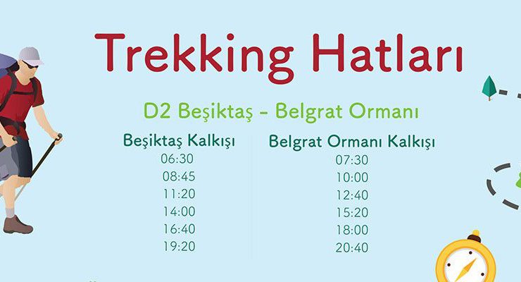 İstanbul’un ormanlarında doğa yürüyüşü yani trekking yapmak isteyenler için İETT’den iki yeni hat geliyor. 15 Mayıs Pazar günü saat 11.00’da Beşiktaş İskele’den kalkacak ona D2 Beşiktaş- Belgrad Ormanı hattını ilk kez İstanbul’un çeşitli okullarından gelen gençler deneyecek. D2 numaralı Beşiktaş- Belgrad Ormanı hattı, Beşiktaş İskele- Zincirlikuyu Metrobüs, 4. Levent, Maslak, Hacıosman, Atatürk Arboretumu’ndan geçerek Belgrad Ormanına ulaşırken, Anadolu Yakasındaki D1 hattının güzargahı ise; Kadıköy, Numune hastanesi, Doğancılar, Altunizade, Ümraniye, Çakmak Köprüsü, Şile Yolu, Çubuklu Evleri, Polonezköy Muhtarlık olacak. Hatlar, bahar ve yaz aylarında hafta sonları hizmet verecek.