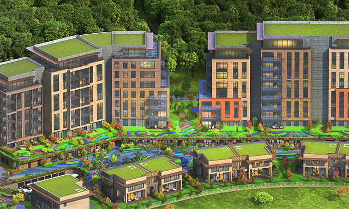 Investvadi ile bölgede bir ilk olarak geniş bahçe ve oturum alanlarına sahip müstakil villalar, bahceli daireler ile büyük balkonlar ve teraslardan oluşan konutlar yer alıyor. Zengin sosyal donatı alanları, geniş peyzaj alanları, yüzme havuzu, fitness ve spor merkezi, çocuk oyun alanları ve elektrikli araç şarj ünitelerine sahip otopark alanları yer alıyor.