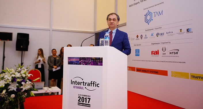 Intertraffic İstanbul 9. Uluslararası Altyapı, Trafik Yönetimi, Yol Güvenliği ve Park Sistemleri Fuarı’nda konuşan İstanbul Büyükşehir Belediyesi Genel Sekreteri Dr.Hayri Baraçlı:“Şehirler sürekli göç alıyor. 2030 yılında şehirlerdeki nüfusun yüzde 60’lar dolayında olacağını göz önünde bulundurduğumuzda, trafik yönetiminin farklı bir noktaya geleceği ve toplu ulaşım sistemlerinin şehrin mobilitesini ne kadar etkileyeceği ortaya çıkıyor. Akıllı toplu ulaşım sistemleri, akıllı trafik sistemleri bizim en önemli hedefimiz. Toplu ulaşımla ilgili birçok projeye imza atıyoruz. Son 13 yılda İstanbul’da 98 milyar liralık bir yatırım gerçekleştirildi. Bu bütçenin ulaşım harcamalarındaki payı yüzde 45. 2017 yılı sonuna kadar İstanbul’a yapacağımız yatırım tutarı da 112 milyar TL olacak” dedi.