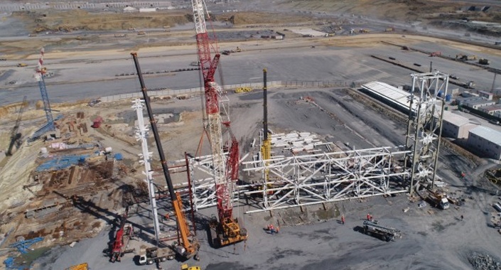 Havalimanı ana terminal binasının çatısında ise onlarca işçinin çalışıyor. İşçiler çatının orta kısımlarında bulunan cam bölmeleri yerleştirdikleri görülüyor. Havalimanında ikinci kulenin de inşaat çalışmaları devam ederek yükselmeye başladığı görüldü. Ana terminal binasının yanında kalan alanda ise uçakların park pozisyonunda yerleşmeleri için yapılan alanların bittiği görülüyor.