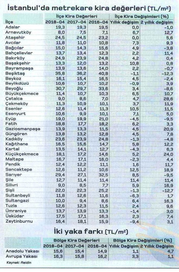Sokaklardaki hafriyat kamyonlarının azalmasıyla birlikte talep yokluğu yüzünden kiralar hızla tırmandıkları zirvelerden isteksizce de olsa inmeye başladı. Kentsel dönüşümün yoğun olarak yaşandığı semtlerde kiralar iki üç yıl öncesine göre yüzde 20-30 arasında, hatta bazı semtlerde yüzde 40 oranında düştü. Kentsel dönüşüm İstanbul’un özellikle Anadolu yakasında yoğun olarak yaşandı.