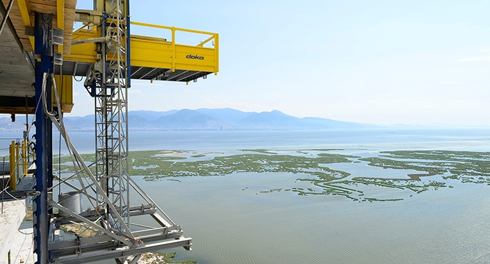 Ayrıca projeye temin edilen TLS ile de Dokadek 30 panellerinin ve diğer ekipmanların üst katlara taşınması kolaylaşıyor. Kapalı platformu sayesinde maksimum iş güvenliği ile katlar arası malzeme aktarımı gerçekleştiren ve yapıyla eşgüdümlü olarak herhangi bir montaj ya da demontaj gerektirmeden yükselen Masa Kalıbı ve Malzeme Taşıma Sistemi TLS, vinçten bağımsız çalıştığı için maliyet avantajı ve zaman tasarrufu da sağlıyor.