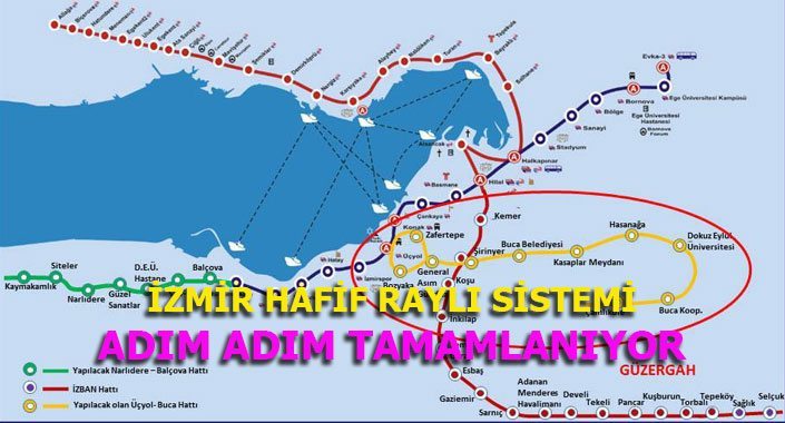 İzmir’de Karşıyaka’dan Balçova’ya kadar uzanacak İzmir Hafif Raylı Sistemlerini içeren metro, tramvay ve banliyö hatları adım adım gerçekleşiyor.