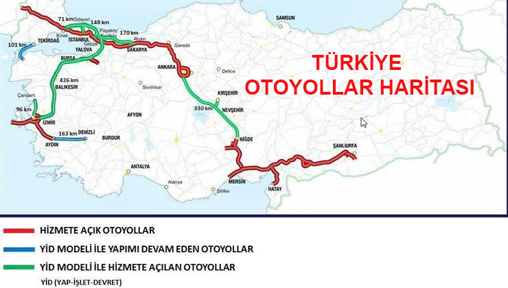 40,823 km uzunluğundaki otoyol güzergahında;