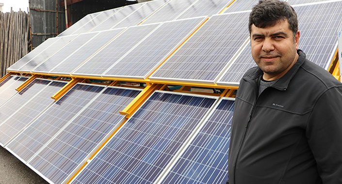 Kahramanmaraş’ta girişimci iş adamı Bilal Kılıçaslan, güneşi takip edebilen güneş enerjisi ve mobil güneş enerji sistemi yaptı. Uzun yıllar elektrik enerji sistemleriyle uğraşan Kılıçaslan, devletten yüzde 50 destekli mobil güneş enerji sistemini hazırladı. 4 teker üzerine kurulan gezici güneş enerjisi hem çiftçilerin hem de elektriğini bedavaya getirmek isteyen insanların tercih edeceği alternatif ürünler arasına girmeyi hedefliyor.