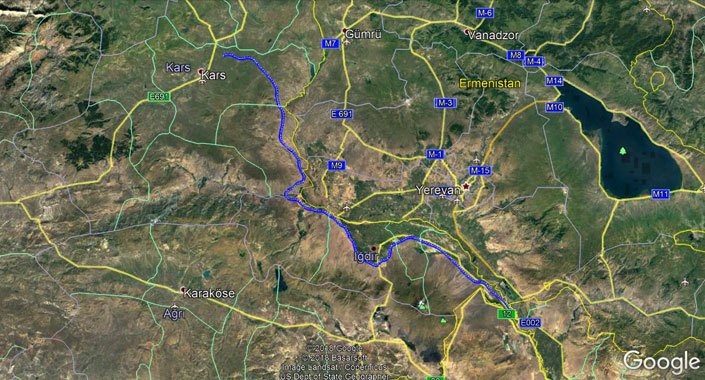 Demiryolu güzergahının; 87 km’si Kars, 137,709 km’si de Iğdır sınırları içerisinde yer alıyor.