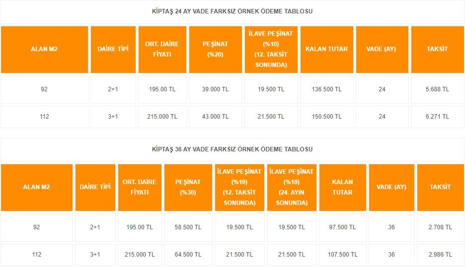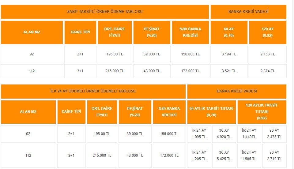 3- Banka kredili ödemelerde ise yüzde 20 peşinat ile kalan kısım için 0,92 faiz oranlı 120 ay taksit avantajı sunuluyor.