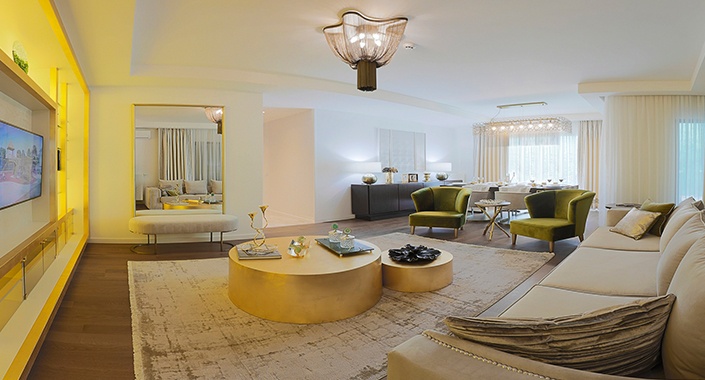 Kaliteli yaşamdan ödün vermek istemeyenler için tasarımında şık ve yalın bir konsept sunulan örnek dairede açık renk tonları tercih edildi. Malzemelerin gold renk ile sağlandığı örnek daire detaylar ile göz kamaştırıyor. Sadeliğin ön plana çıktığı örnek dairede aksesuarlardaki parlaklıklar ve tablolardaki renkler ise ömre bedel bir yaşam için ipuçları veriyor. Pastel tonlar, beyaz ve mermer dokusuyla mükemmel bir uyum yakalanan Kordon İstanbul’un örnek dairesi, modern çizgisiyle tüm ziyaretçilerin beğenisini kazanıyor.