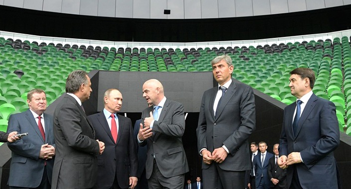 Krasnodar Arena’nın Rusya’nın sorumluluklarını yerine getireceğinin kanıtı niteliğinde olduğunu belirten FIFA Başkanı Gianni Infantino, Putin’e Krasnodar’daki stadyumu bizzat gezdirmesi ve FIFA Dünya Kupası’na iyi hazırlanmalarından dolayı teşekkür etti. Infantino, “Krasnodar Arena, Rusya’nın ne olduğunu ve turnuvalar için neler yaptığını gösterecek örneklerden biri. Krasnodar’da futbolun gelişimi için son derece modern tesisler gördüm. Tüm dünyanın Rusya’nın sadece kendisi için değil, dünya için futbolun gelişimine yönelik yaptıklarını görmesi önemli” diye konuştu. Genç sporcuların, dünya futboluna kazandırıldığı Krasnodar Akademi’ye de değinen Infantino, “Bugün burada Krasnodar’da, futbol gelişimi için çok modern tesisler gördük. Ayrıca gördüğümüz sadece muhteşem bir stadyum değil, aynı zamanda gençlerin gelişimi için hizmet veren Krasnodar Akademi’de eğitim ve sporun bir arada olduğu sağlam bir yapı görüyoruz” dedi.