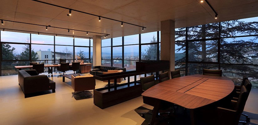 Cam Ofis, misafirlerini geniş cam açıklığının ön planda olduğu ana girişle karşılıyor. Cam Ofis’in Giriş-Danışma alanı ve Mini Kafe’den oluşan karşılama alanının bir tarafında toplantı odaları yer alırken, diğer taraf mutfak – sosyal aktivite – etkinlik mekanlarına ayrılıyor. Cam Ofis’in geri kalanından bağımsız bir girişi de bulunan Etkinlik Alanı; sergi, workshop ve seminerlere ev sahipliği yapıyor. Açık ofislerin yer aldığı zemin kat, 1.kat ve çatı arası katında; cam seperasyonlar ve brüt beton ile oluşturulmuş minimum kolon-kiriş sistemiyle şeffaf ve geniş hacimler yaratılan Cam Ofis’te keyifli bir teras da bulunuyor. Odun ateşinin sıcaklığıyla dinlenmek ve hoş vakit geçirmek için tasarlanan manzaralı teras katı, keyifli toplantılar ve eğlenceli molalar vaat ediyor.