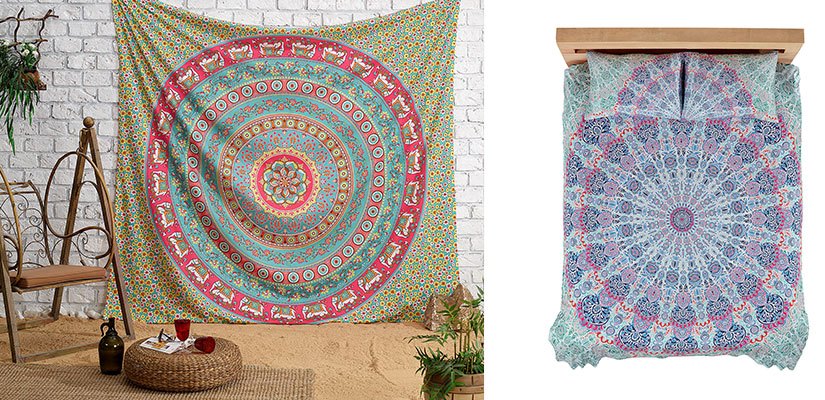 Tamamen doğal pamuk satenden üretilen rengarenk Let’s Boho ürünlerinin kullanım alanı çok geniş. Evrensel enerjinin taşıyıcısı olan Mandala motifini evlere taşıyan bu fonksiyonel örtüler, yatak örtüsü, masa örtüsü, duvar panosu ya da koltuk şalı olarak kullanılabiliyor. Bir noktadan dalga dalga genişleyerek oluşan Mandala, kendisiyle etkileşime giren kişiye, evrenin mükemmelliğini ve barındırdığı sınırsız enerjiyi hatırlattığı söyleniyor.