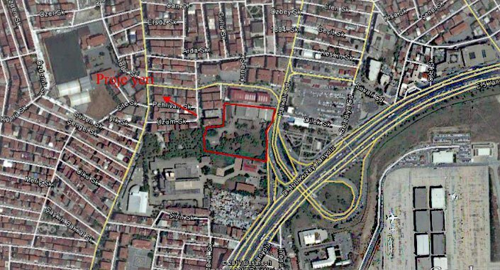 Projenin geliştirileceği alan yerleşim yeri olduğundan çevresi yerleşimlerle ve çeşitli işyerleriyle kaplı bulunuyor. Proje alanına en yakın yerleşim yeri; yaklaşık 50 m doğusunda ve 130 m güneyinde yer alan işyerleri ve konutlardan oluşuyor.