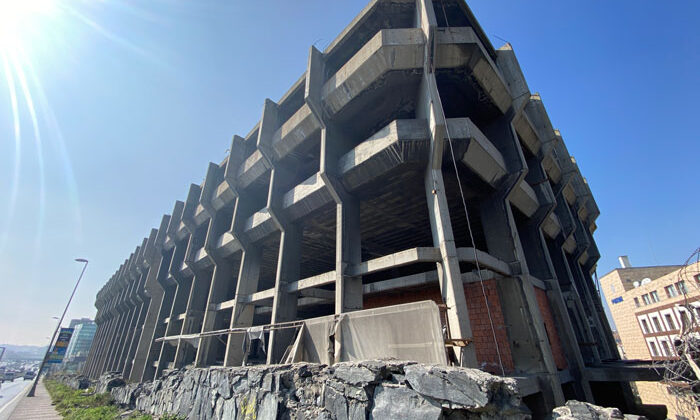 İstanbul’un en işlek alanlarından birinin üzerinde yer alan bina, atıl durumda bırakıldı. 1990’da inşasına başlanan ancak kaba inşaat olarak bekleyen bina, uzun yıllar reklam panosu ve baz istasyonu olarak kullanıldı. E-5 karayolunun yanında, Topkapı-Merter yönünde kalan ve kaba inşaat halinde olan bina drone ile havadan görüntülendi.