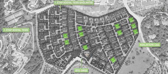 Projede Sakız Villaları 11, Salkım Villaları 5, Zeytin Villaları 20, Kumsal Villaları 10, Vadi Villaları 5, Toprak Villası, 1, Deniz Villaları 13 ve Ege Villaları da 3 adet olacak.