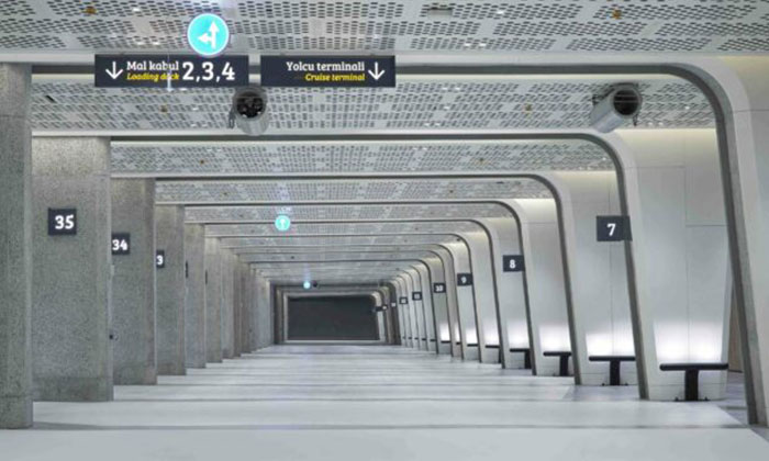 Galataport Yeraltı Terminali’nin suyun altında olduğunu ve tavanının su seviyesi ile neredeyse aynı hizada olduğunu belirten Sefer Çağlar, “Bu tavanı da su hareketlerinden yola çıkarak tasarladık. Çok aydınlık ve ferah bir yer yapmak istedik. Bunun için de çok iyi bir aydınlatma tasarımcımızla çalıştık. O yüzden hiç göz almıyor, insanı sakinleştiriyor. Çünkü buraya gelen insanlar aslında tatile geliyor” diyor.
