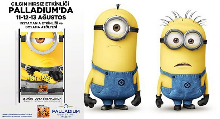 Palladium Ataşehir AVM sıcak yaz günlerinde İstanbullu çocukları sevindirecek son derece güzel bir etkinliğe imza atıyor. “Çılgın Hırsız” filminin kostüm karakterleri Minyonlar, 11-12 ve 13 Ağustos tarihlerinde ziyaretçileri ile buluşuyor. Çocuklar çok sevdikleri animasyon filminin renkli karakterleri ile gün boyu eğlenceli zamanlar geçirirken onlara yetişkinler de eşlik edecek.