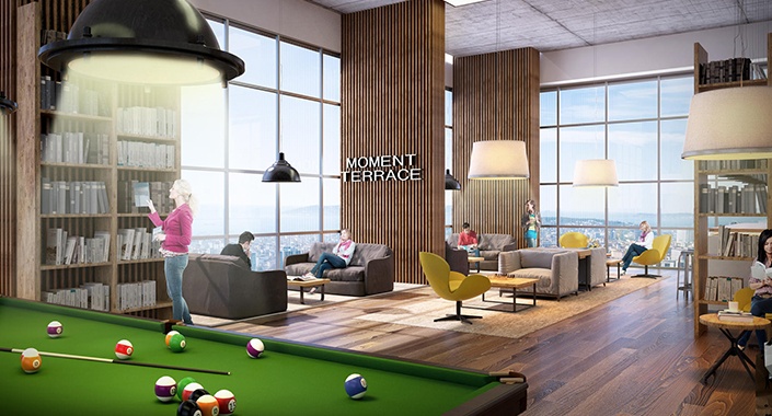 Daire sahiplerinin misafirlerini ağırlayabilecekleri, 36’ncı katta yer alan ortak kullanım alanında bulunan Moment Terrace, cep sineması, tiyatro ve toplantı salonu, müzik odası ve çocuk oyun odasından oluşan roof alanı ayrıca ortak kullanım alanın dikkat çekici unsurları arasında…