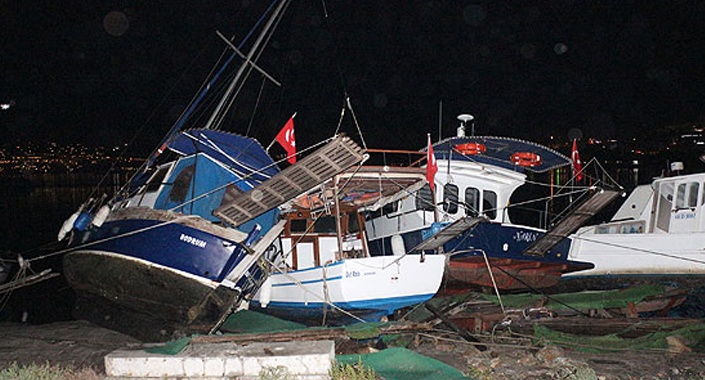 Bodrum Belediye Başkanı Mehmet Kocadon, ilçede depremin ardından deniz suyunun çekilip tekrar yükselmesi nedeniyle bazı teknelerde hasarlar meydana geldiğini söyledi.