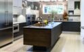 2018 de mutfaklar daha çok oturma odası görünümünde, ahşap ile gri tonlarının ve vizon renginin kombinasyonları, açık raflarda kitaplar, bitkiler, resim çerçeveleri, oturma alanları, ada etrafı ve sabit oturumlar ile çeşitleniyor.