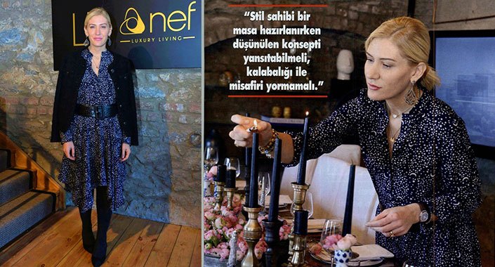 Yalı ve mahalle kültürünün iç içe geçtiği bir mekan. Dolayısıyla biraz eski Osmanlı saray masaları gibi nostaljik dokunuşlar istiyordu masa. Masa kurmak annemin üzerinde titizlikle emek verdiği bir olaydı bizim evimizde. Her konsepte uygun dekoratif çiçek ve aksesuar seçerdi. Ben de bu masayı kurarken biraz o dönem masalarını çalıştım, padişahların sarayda nasıl sofralarda yemek yediklerini araştırdım ve masada kullanacağım. Detayları Nef Luxury Living’e, Nef Kandilli projesine uyarlamaya çalıştım.