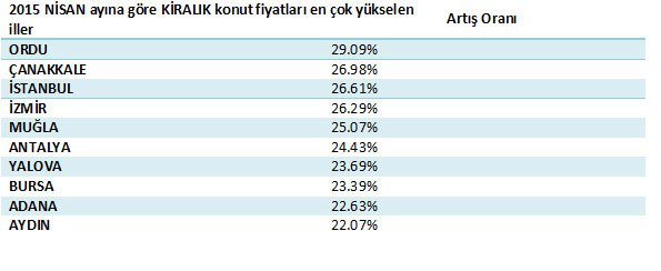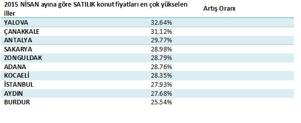Reidin’in Türkiye İş Bankası’nın desteğiyle hazırladığı emlak endeksinin nisan ayı raporu yayımlandı, Türkiye ekonomisinin lokomotifi konumunda bulunan inşaat sektörünün nabzını ölçen endeks 62 il, 221 ilçe ve 1083 mahalleyi kapsıyor. Endeksin nisan ayı raporuna göre, Türkiye’nin en büyük 7 şehri arasında geçen yılın aynı ayına kıyasla satılık konut fiyatları en çok yüzde 32,64 ile Yalova’da arttı. Yayovayı, Çanakkale ve Antalya takip ederken kira fiyatlarının en çok yükseldiği şehir ise yüzde 29,09 ile Ordu oldu. Kura artışında Ordu’yu Çanakkale ve İstanbul izledi.