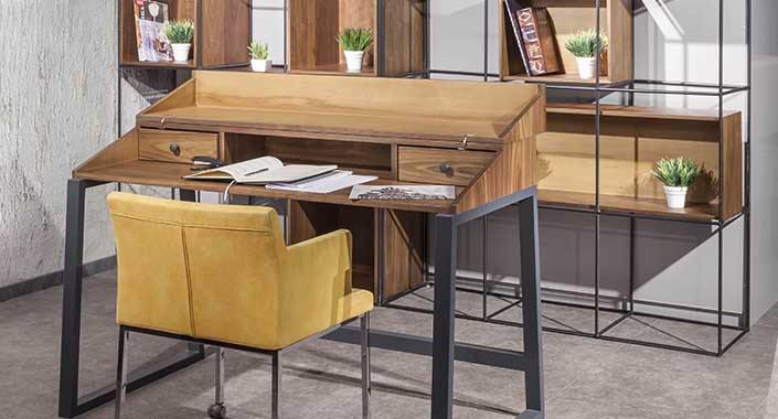 Çalışma odaları ilk bakıldığında rahat ve sakin olmalı. Art Design bunun için de dikkat dağınıklığına yol açmayan ve gözü yormayan özel bir çalışma grubunu 2017 koleksiyonuna ekledi. Style çalışma masası ve kitaplığı, doğallık arayanlar için masif ve metalin sade şıklığını çalışma odalarına yansıtıyor. Yine istenilen ölçü, renk ve hatta tasarım ile bu ürünü isteğe özel biçimlendirmek mümkün